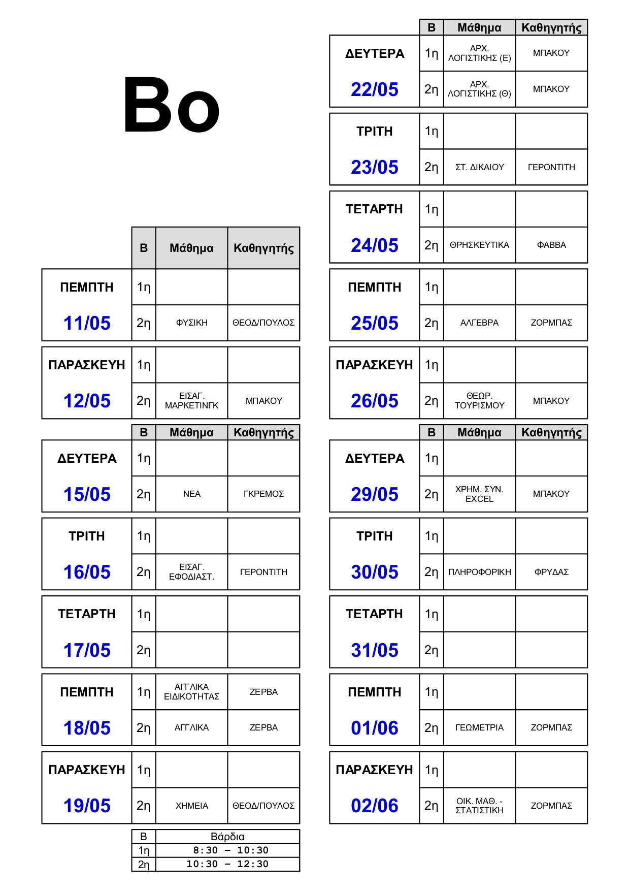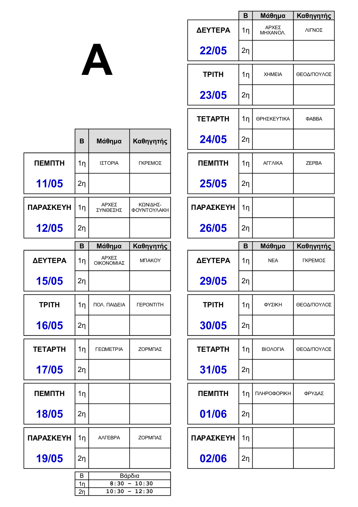 Ανακοινώσεις Πρόγραμμα ενδοσχολικών εξετάσεων Ιουνίου Date: 09/05/2017Author: epalalimou 0 Σχόλια Το πρόγραμμα εξετάσεων Ιουνίου κατά τάξη, τομέα και ειδικότητα είναι: Α’ τάξη Β’ μηχανολόγων Β’ εφαρμοσμένων τεχνών Β’ διοίκησης & οικονομίας Β’ πληροφορικής Γ’ μηχανολόγων Γ’ διοίκησης & οικονομίας Γ’ πληροφορικής Κοινοποιήστε: Κάνε κλικ για να μοιραστείς στο X(Ανοίγει σε νέο παράθυρο) Χ Πατήστε για κοινοποίηση στο Facebook(Ανοίγει σε νέο παράθυρο) Facebook Κλικ για εκτύπωση(Ανοίγει σε νέο παράθυρο) Εκτύπωση Κλικ για αποστολή ενός συνδέσμου μέσω email σε έναν/μία φίλο/η(Ανοίγει σε νέο παράθυρο) Email Μου αρέσει! Φόρτωση...
