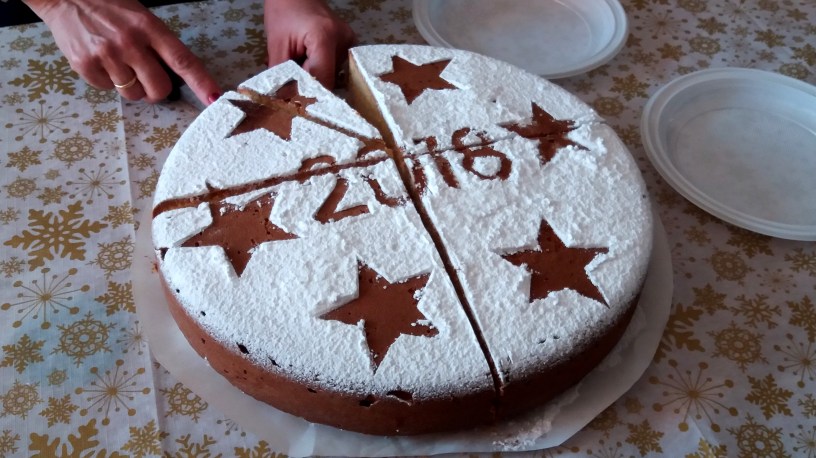 Ανταλλάξαμε ευχές, τρώγοντας την πεντανόστιμη βασιλόπιτα και πίνοντας κόκκινο γλυκό κρασί.
