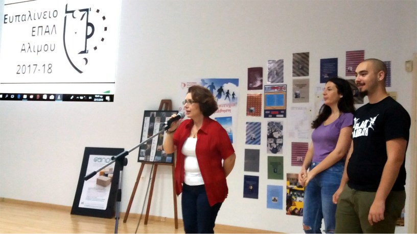 Σήμερα, Τετάρτη 23 Μαΐου 2018, συμμετείχαμε στο φεστιβάλ Σχολικών Δραστηριοτήτων 2018 της Δ’ Διεύθυνσης Δευτεροβάθμιας Εκπαίδευσης Αθήνας. Η Διευθύντρια κ. Σοφία Νικηφορίδου, πλαισιωμένη από τους μαθητές της Γ΄τάξης Πηνελόπη Κελαϊδίτη και Χρήστο Ξένο, αναφέρθηκε εν συντομία στα διάφορα προγράμματα που έτρεξαν φέτος στο σχολείο μας: «εικονική επιχείρηση» του τομέα Διοίκησης & Οικονομίας, εικαστικές δράσεις στην είσοδο και το κλιμακοστάσιο του κτηρίου του ΕΠΑΛ από τον τομέα Εφαρμοσμένων Τεχνών, ρομποτική από τους τομείς Μηχανολόγων και Πληροφορικής, Αγωγής Υγείας, κ.ά.