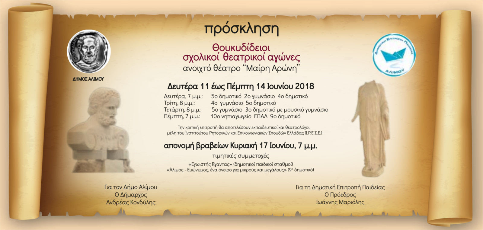 Η πρόσκληση των Θουκυδίδειων Σχολικών Θεατρικών Αγώνων: