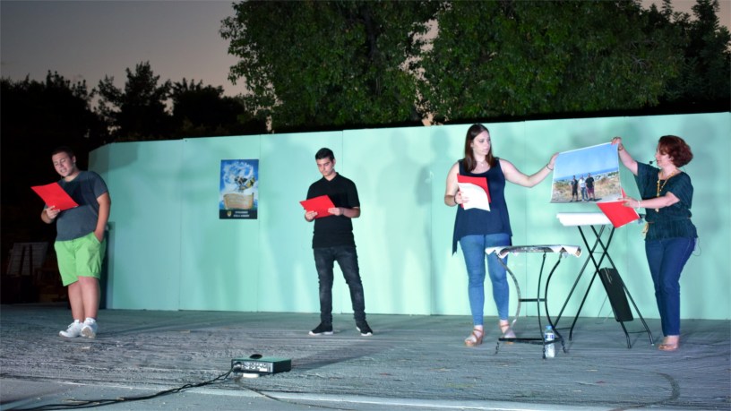 Στο θεατρικό δρώμενο συμμετέχουν οι μαθητές Βίβιαν Βάτσικα, Γιάννης Παυλής και Γιώργος Ταντάκης με τη Διευθύντρια του σχολείου κ. Σοφία Νικηφορίδου: