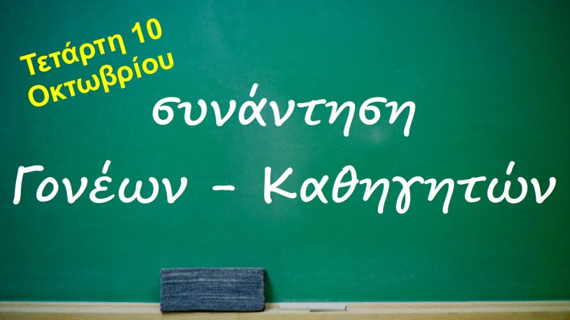 Για το σκοπό αυτό σας καλούμε την Τετάρτη 10 Οκτωβρίου 2018 και ώρα 18:00 στην αίθουσα πολλαπλών χρήσεων του σχολείου μας, να γνωριστούμε και να ενημερωθείτε για θέματα που αφορούν τη φοίτηση και την πρόοδο των παιδιών μας.