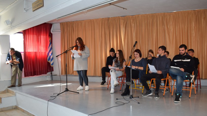 Ο πανηγυρικός της ημέρας εκφωνήθηκε από τον καθηγητή κ. Σπύρο Γκρέμο, στη συνέχεια έγιναν απαγγελίες ποιημάτων και πεζών έργων και ακούστηκαν τραγούδια από την χορωδία ενώ παρουσιάστηκε οπτικοακουστικό υλικό. Η γιορτή έκλεισε με τον Εθνικό Ύμνο.