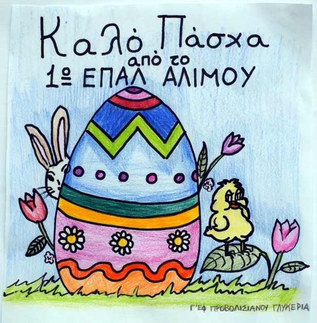 Δραστηριότητες, Η ζωή στο Σχολείο Καλή Ανάσταση και Καλό Πάσχα! Date: 19/04/2019Author: epalalimou 0 Σχόλια Η Διευθύντρια, ο Σύλλογος Διδασκόντων, οι μαθητές και οι μαθήτριες του Ευπαλίνειου ΕΠΑΛ Αλίμου σας εύχονται Καλή Ανάσταση και Καλό Πάσχα! Η κάρτα του σχολείου που ζωγράφισε η Γλυκερία: Κοινοποιήστε: Κάνε κλικ για να μοιραστείς στο X(Ανοίγει σε νέο παράθυρο) Χ Πατήστε για κοινοποίηση στο Facebook(Ανοίγει σε νέο παράθυρο) Facebook Κλικ για εκτύπωση(Ανοίγει σε νέο παράθυρο) Εκτύπωση Κλικ για αποστολή ενός συνδέσμου μέσω email σε έναν/μία φίλο/η(Ανοίγει σε νέο παράθυρο) Email Μου αρέσει! Φόρτωση...