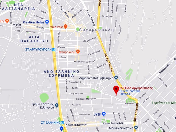 Οι απόφοιτοι του ΕΠΑΛ Αλίμου που θα δώσουν Πανελλαδικές θα εξεταστούν στο ΕΠΑΛ Αργυρούπολης (χάρτης Google).