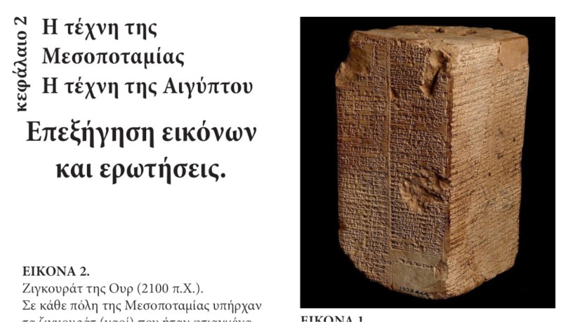Αγαπητοί μαθητές της Β’ Εφαρμοσμένων, την Τρίτη 29-10-2019 θα πραγματοποιηθεί η πρώτη γραπτή δοκιμασία στο μάθημα της Ιστορίας της Τέχνης. Το κεφάλαιο που θα εξεταστεί είναι το 2ο Μεσοποταμία – Αίγυπτος. Ακολουθεί φυλλάδιο επεξήγησης των εικόνων και διευκρινιστικών ερωτήσεων.