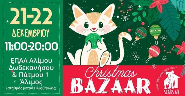 Το Παζάρι οργανώνεται από το SCARS (Second Chance Animal Rescue Society – Greece) το Σαββατοκύριακο 21-22 Δεκεμβρίου 2019 και ώρα από 11:00 έως και 20:00 στην αίθουσα πολλαπλών χρήσεων. Το σχολείο μας θα έχει τον δικό του πάγκο στο Παζάρι αυτό με τη συμμετοχή μαθητριών, μαθητών και γονέων!