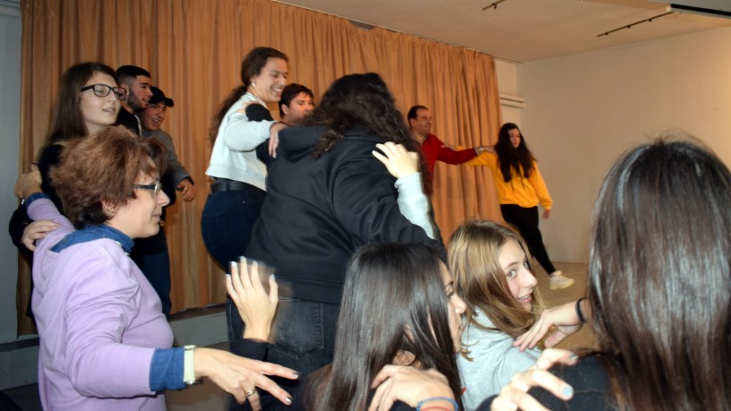 Στη συνέχεια, τη σκυτάλη έλαβε η χορευτική ομάδα του σχολείου μας που παρουσίασε παραδοσιακούς χορούς απ’ όλη την Ελλάδα. Τα παιδιά μας χόρεψαν Συρτό Μακεδονίας, Τσάμικο, Κότσαρι από τον Πόντο, Πεντοζάλη από την Κρήτη, Ροδίτικο και Μπάλο. Κλείνοντας την παρουσίαση, χορέψαμε όλοι μαζί, καθηγητές και μαθητές, Χασαποσέρβικο και Ικαριώτικο.