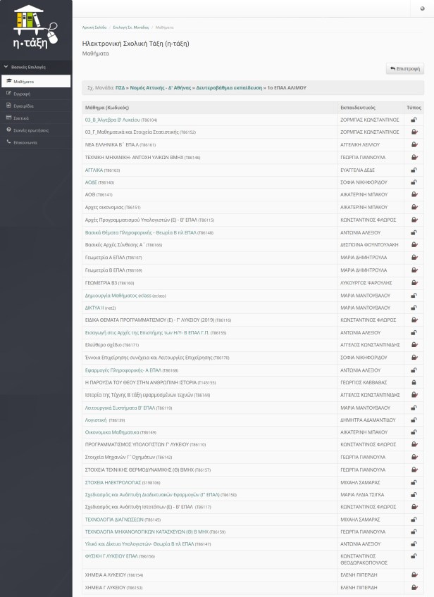 Η η-τάξη του σχολείου μας φιλοξενείται στο Πανελλήνιο Σχολικό Δίκτυο! Σε αυτή οι εκπαιδευτικοί τοποθετούν τα μαθήματα που γίνονται σε ασύγχρονη μορφή. Υπάρχουν διάφορες κατηγορίες μαθημάτων. Δύο είναι αυτές που χρησιμοποιούνται συχνότερα: