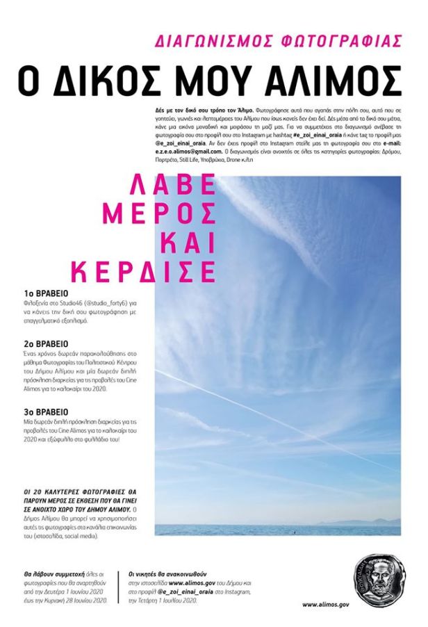 Οι νικητές θα ανακοινωθούν στην ιστοσελίδα (www.alimos.gov.gr) του Δήμου και στο προφίλ @e_zoi_einai_oraia στο Instagram, την Τετάρτη 1 Ιουλίου 2020.