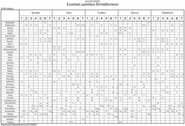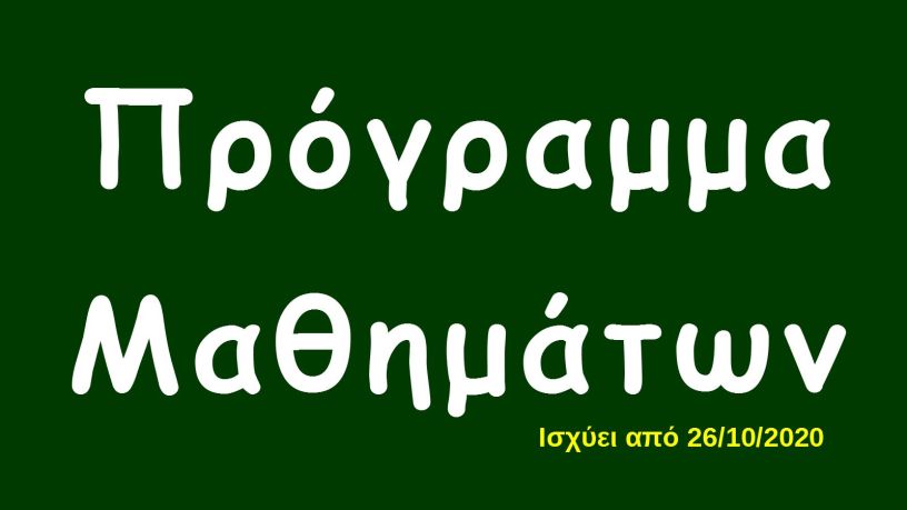 Το πρόγραμμα που ισχύει από Δευτέρα 26 Οκτωβρίου 2020!