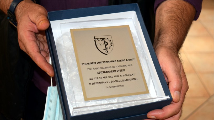 Με τις ευχές μας για υγεία και μακροημέρευση με τους δικούς τους ανθρώπους, για νέες δημιουργικές ενασχολήσεις και την αγάπη μας, εκ μέρους όλων η Διευθύντρια κ. Σοφία Νικηφορίδου, αφού είπε λίγα ξεχωριστά για τον καθένα λόγια, έδωσε στους συναδέλφους αναμνηστική πλακέτα –συμβολική αναγνώριση της συναδελφικότητας που επέδειξαν και της προσφορά τους στην εκπαίδευση εν γένη!