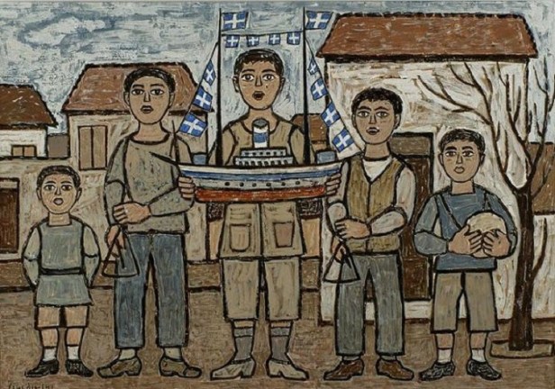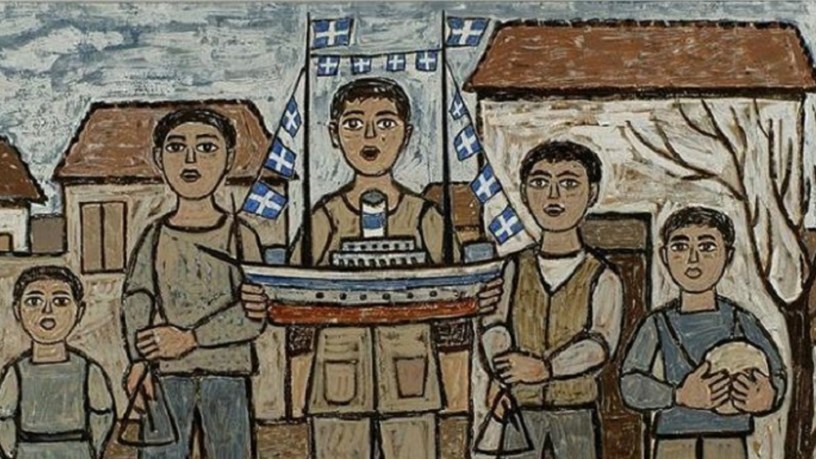 «Τα κάλαντα» 1962, του Γεώργιου Σικελιώτη. Περιλαμβάνεται στη συλλογή από 28 έργα με τίτλο «Οι Γυρολόγοι της Αθήνας». Τα έργα κόσμησαν το ημερολόγιο της εταιρείας Τσιμέντων ΑΓΕΤ Ηρακλής-Όλυμπος το 1962. Η συλλογή έχει παραχωρηθεί στο Μουσείο Μπενάκη.