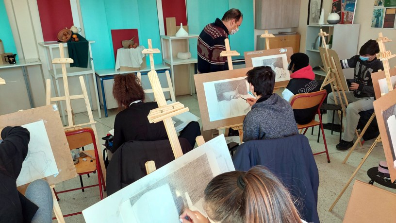 Ας πάρουμε όμως τα πράγματα από την αρχή. Ο καθηγητής καλλιτεχνικών σπουδών κ. Άγγελος Κωνσταντινίδης εξέφρασε στους μαθητές και τις μαθήτριες του Τομέα την επιθυμία που υπήρχε από καιρό για την δημιουργία μιας αίθουσας αποκλειστικά για τα μαθήματα του Ελευθέρου Σχεδίου και του Εργαστηρίου Χρώματος.