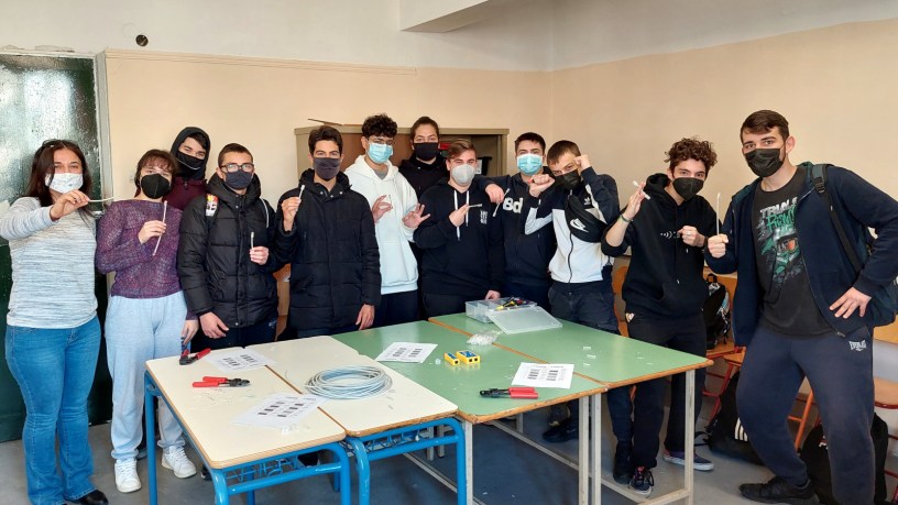 Στη συνέχεια, οι μαθητές χωρίστηκαν σε ομάδες με βάση τα διαθέσιμα εργαλεία και άρχισαν να κατασκευάζουν, ο καθένας το δικό του καλώδιο. Στην πορεία βοήθησαν ο ένας τον άλλο και αντιμετώπισαν προβλήματα που παρουσιάστηκαν (όπως την έλλειψη απογυμνωτή του εξωτερικού περιβλήματος). Οι μαθητές που ήσαν πιο “γρήγοροι”, κατάφεραν να κατασκευάσουν μερικά καλώδια αλλά οι περισσότεροι όχι. Για το λόγο αυτό αποφασίστηκε η άσκηση να επαναληφθεί…