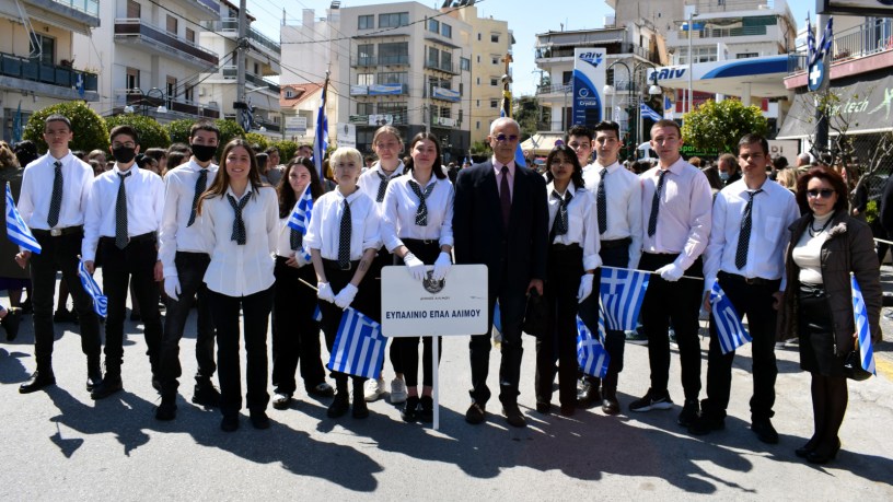 Οι μαθητές και μαθήτριες του ΕΠΑΛ Αλίμου που εκπροσωπούν το σχολείο στην παρέλαση.
