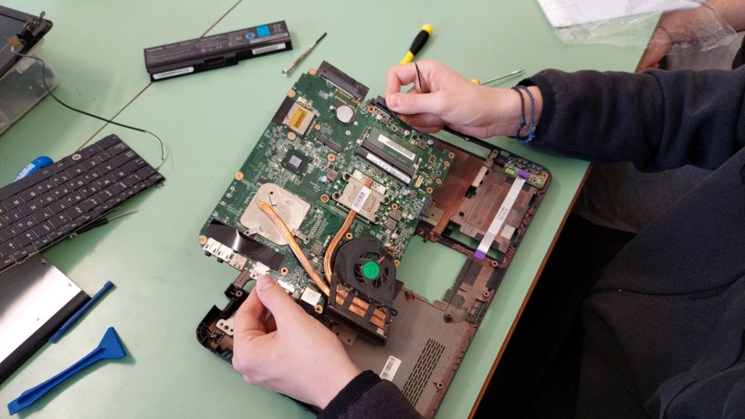 Η εργασία αυτή είχε προγραμματιστεί να γίνει αρχές Μαρτίου! Δεδομένου ότι το εργαστηριακό μάθημα γίνεται ένα διδακτικό δίωρο κάθε Παρασκευή και φέτος “χάθηκαν” αρκετές Παρασκευές λόγω εορτών και διαφόρων σχολικών δραστηριοτήτων, το εργαστηριακό κομμάτι του μαθήματος πήγε πίσω. Στο δίωρο της 15/4/22 η ομάδα κατάφερε να φτάσει στο σημείο μέχρι να βγάλει την μητρική ενώ, στόχος μας ήταν να βγει ο επεξεργαστής και η ψήκτρα του και να καθαριστούν. Ο στόχος δεν επιτευχθεί – υπήρχε ανάγκη περισσότερου διαθέσιμου χρόνου. Τις ημέρες μετά τις διακοπές του Πάσχα, η ομάδα θα συναρμολογήσει το λάπτοπ (φάση 2η). Παρακινδυνευμένο μια και μετά από 2-3 εβδομάδες, πολλά θα έχουν λησμονηθεί…