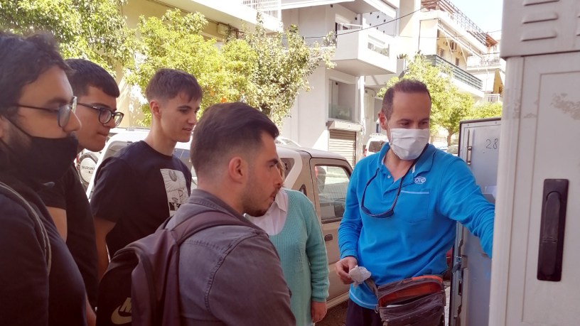 Την Παρασκευή 15/4/2022 οι μαθητές και οι μαθήτριες της Γ’ Πληροφορικής μαζί με τις καθηγήτριές τους Μαρία Μαντουβάλου και Αγγελική Καλανίδου παρευρέθηκαν στο ΚΑΦΑΟ της περιοχής. Εκεί τεχνικός του ΟΤΕ έδειξε στους μαθητές το εσωτερικό του, τα καλώδια, τις “ρεγκλέτες” (θύρες υποδοχής καλωδίων) και τους εξήγησε τη λειτουργία του. Επιπλέον ενημέρωσε τους μαθητές πως γίνεται η μετάβαση από τα χάλκινα καλώδια στις οπτικές ίνες, ένα έργο το οποίο θα ολοκληρωθεί το 2023!