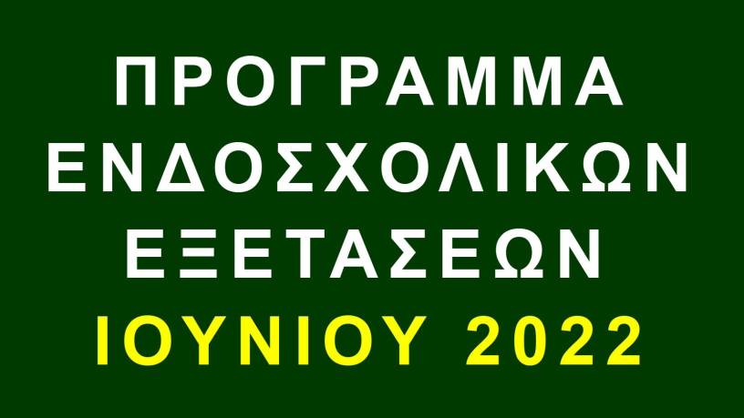 Το Πρόγραμμα ενδοσχολικών εξετάσεων Μαΐου-Ιουνίου 2022 κατά τάξη και τμήμα είναι: