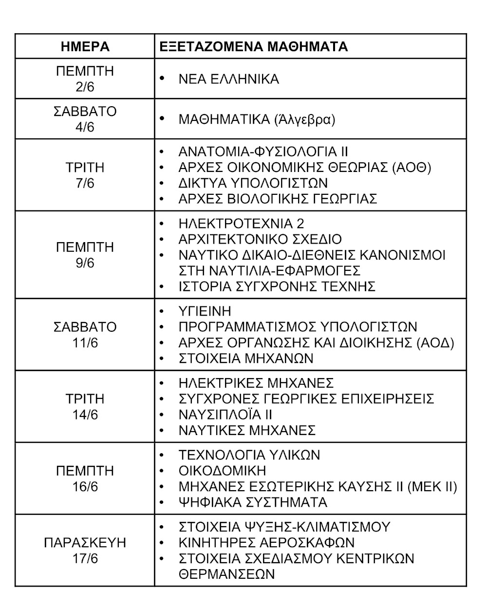 Επιτρέπεται να έχουν μαζί τους ΜΟΝΟ στυλό (μαύρο ή μπλε) ανεξίτηλης μελάνης, μολύβι, γομολάστιχα, γεωμετρικά όργανα και μπουκαλάκι με νερό ή αναψυκτικό. Το ΜΟΛΥΒΙ γενικά ΔΕΝ επιτρέπεται στις απαντήσεις, παρά ΜΟΝΟ αν το διευκρινίζουν οι οδηγίες των θεμάτων.