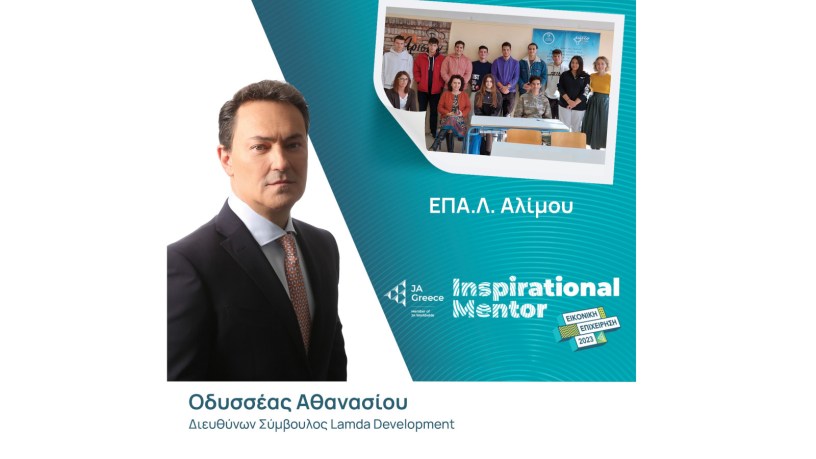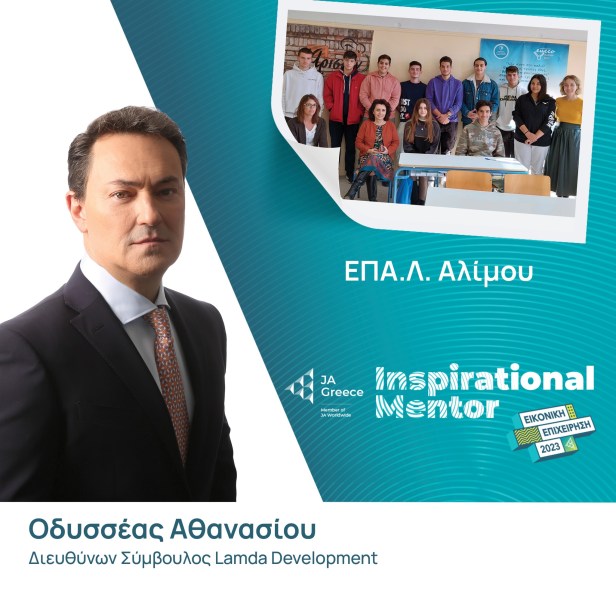 Με μεγάλη επιτυχία πραγματοποιήθηκε την Τρίτη 20 Δεκεμβρίου 2023 η πρώτη συνάντηση των μαθητών και των μαθητριών του προγράμματος “Εικονική Επιχείρηση” με τον Inspirational Mentor κ. Οδυσσέα Αθανασίου, Διευθύνοντα Σύμβουλο της Lamda Development. Η συνάντηση πραγματοποιήθηκε στα πλαίσια του Παγκόσμιου Προγράμματος “Εικονική Επιχείρηση – Company Program” του Junior Achievement Greece, υπό την Αιγίδα της Α.Ε. της Προέδρου της Δημοκρατίας Κατερίνας Σακελλαροπούλου.