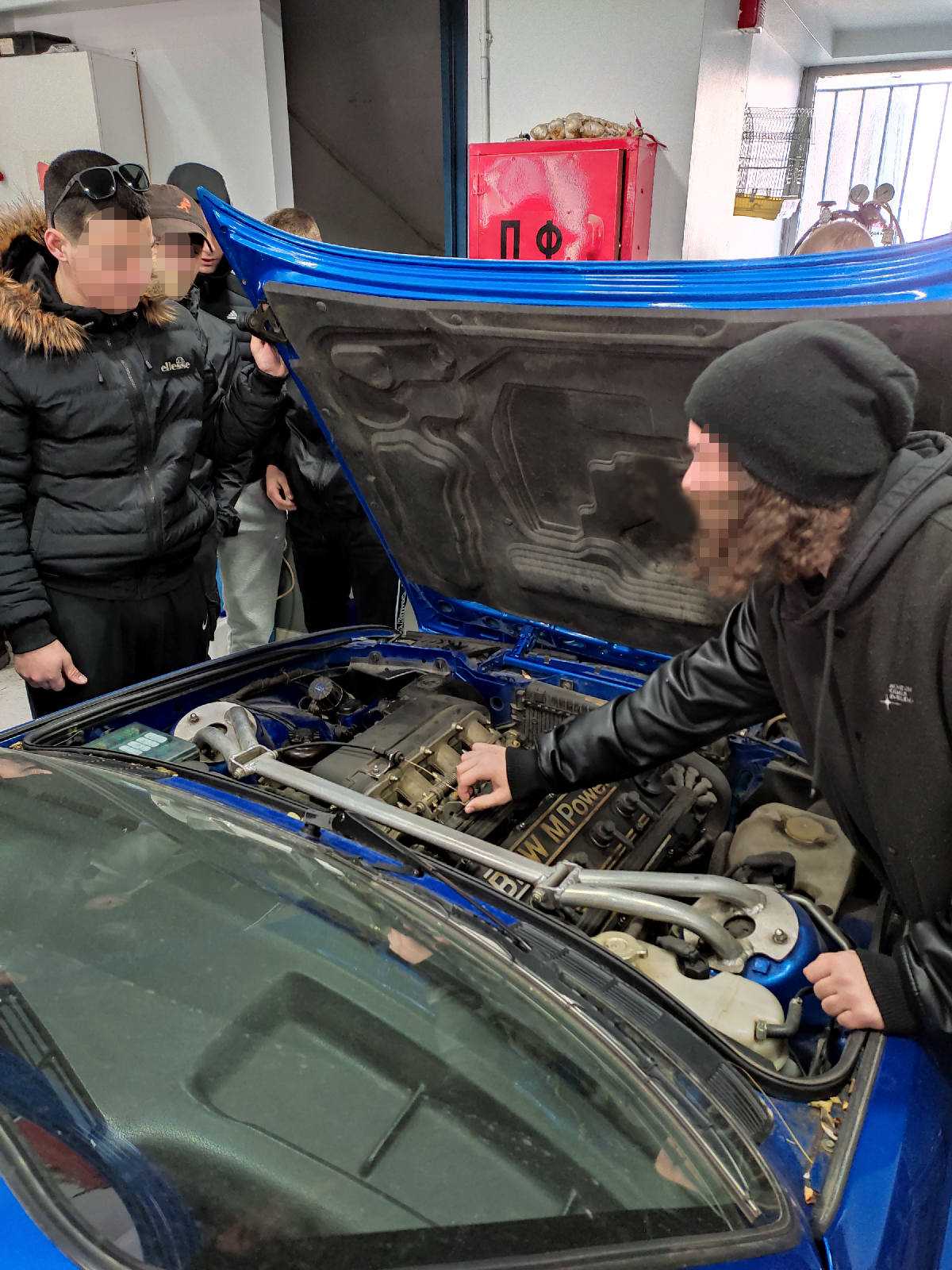 Κατά την διάρκεια της επίσκεψης οι μαθητές και μαθήτριες ξεναγήθηκαν από τον υπεύθυνο του συνεργείου, είδαν την μηχανή και διάφορα μέρη των αυτοκινήτων και παρακολούθησαν την διαδικασία διάγνωσης και επισκευής διαφόρων βλαβών.