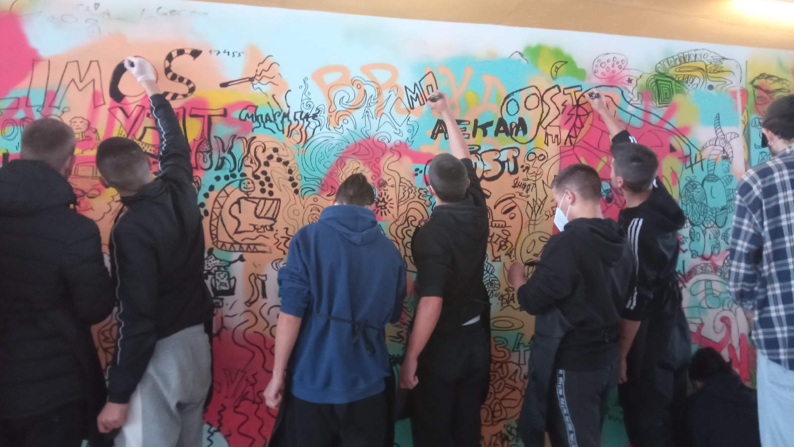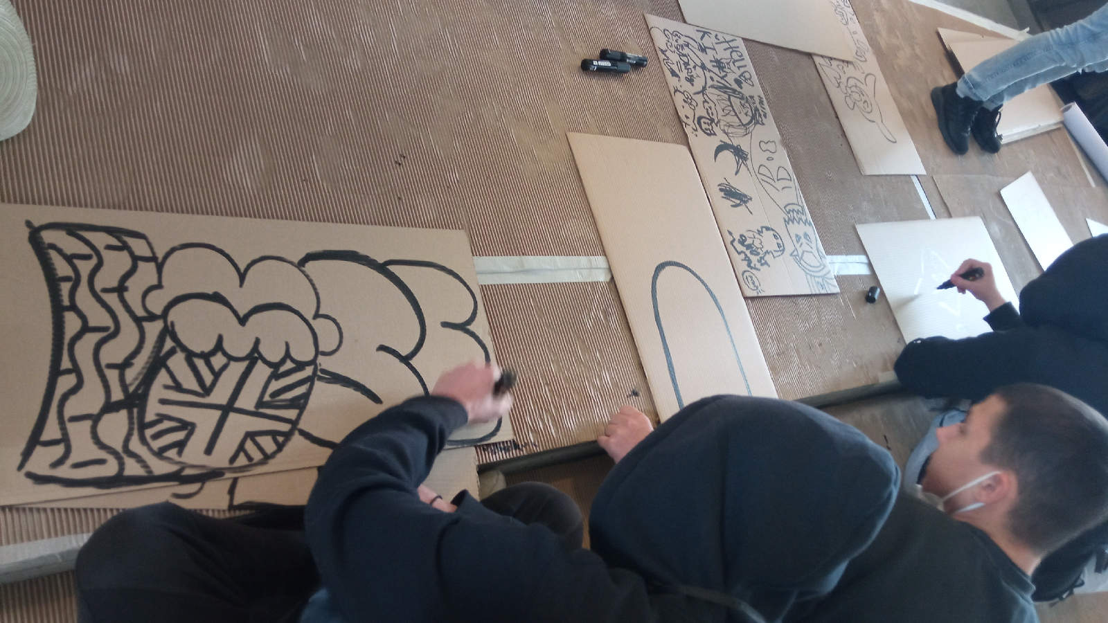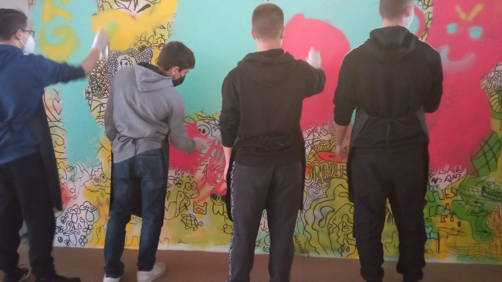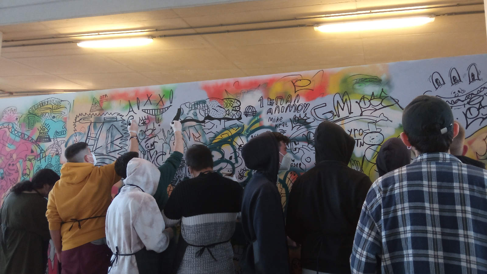 Με εργαλεία τους σπρέι, μαρκαδόρους και πολλή φαντασία, οι μαθητές και οι μαθήτριες μετατρέπονται σε σύγχρονους καλλιτέχνες, δημιουργώντας ένα έργο Graffiti και Doodling! Αρχικά στο κάθε τμήμα των μαθητών και μαθητριών που συμμετείχε έγινε μία σύντομη αλλά εποικοδομητική παρουσίαση σχετικά με το τι είναι graffiti, την ιστορική εξέλιξη και τα είδη που έχουν επικρατήσει καθώς και την μορφή που συναντάμε στην χώρα μας. Στην συνέχεια, οι μαθητές και οι μαθήτριες, χωρίστηκαν σε δύο ομάδες (crews) και κάθε ομάδα διάλεξε όνομα και ξεκίνησαν να εργάζονται με μεγάλη προσήλωση και συγκέντρωση για την υλοποίηση των έργων τους.