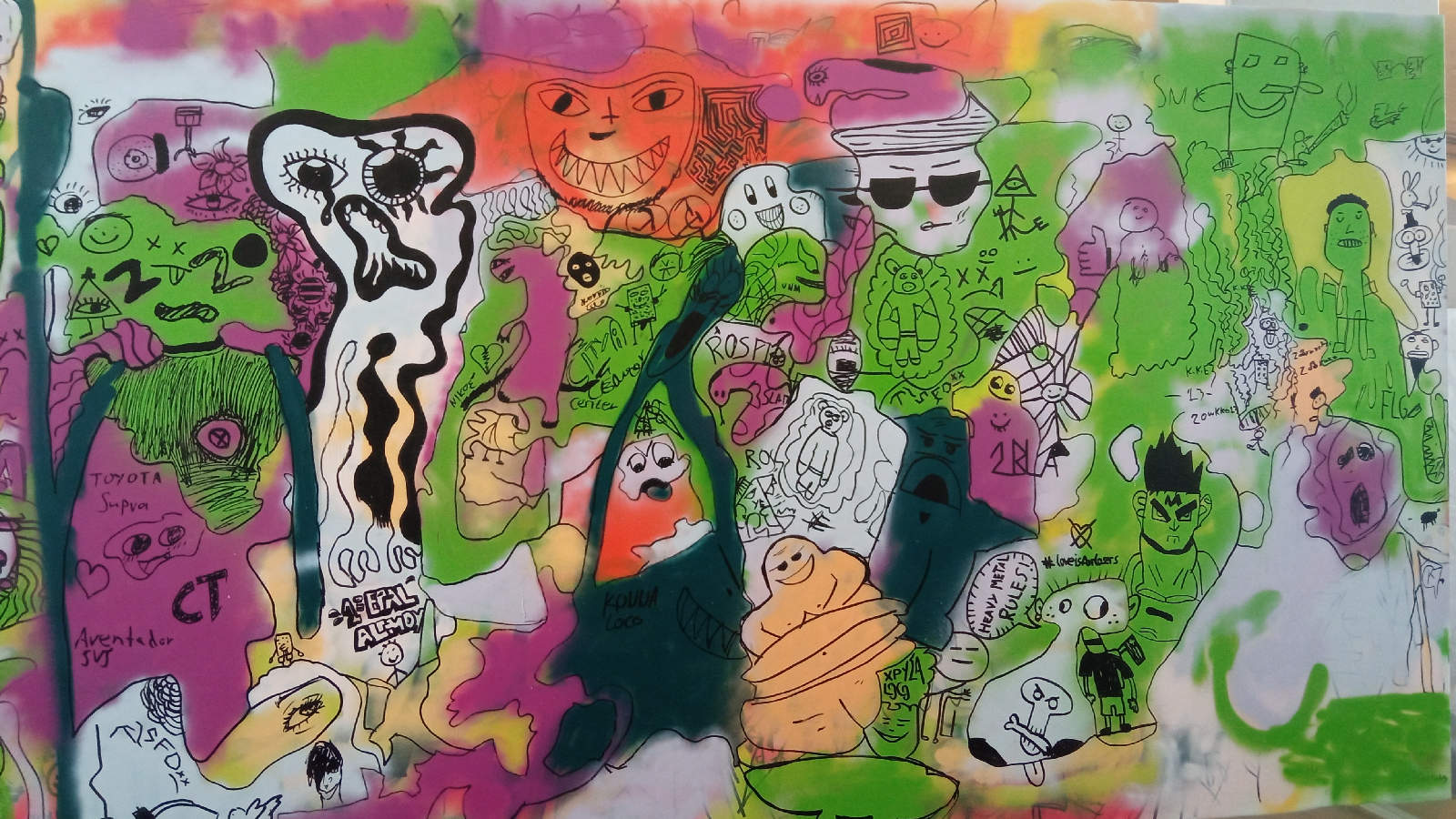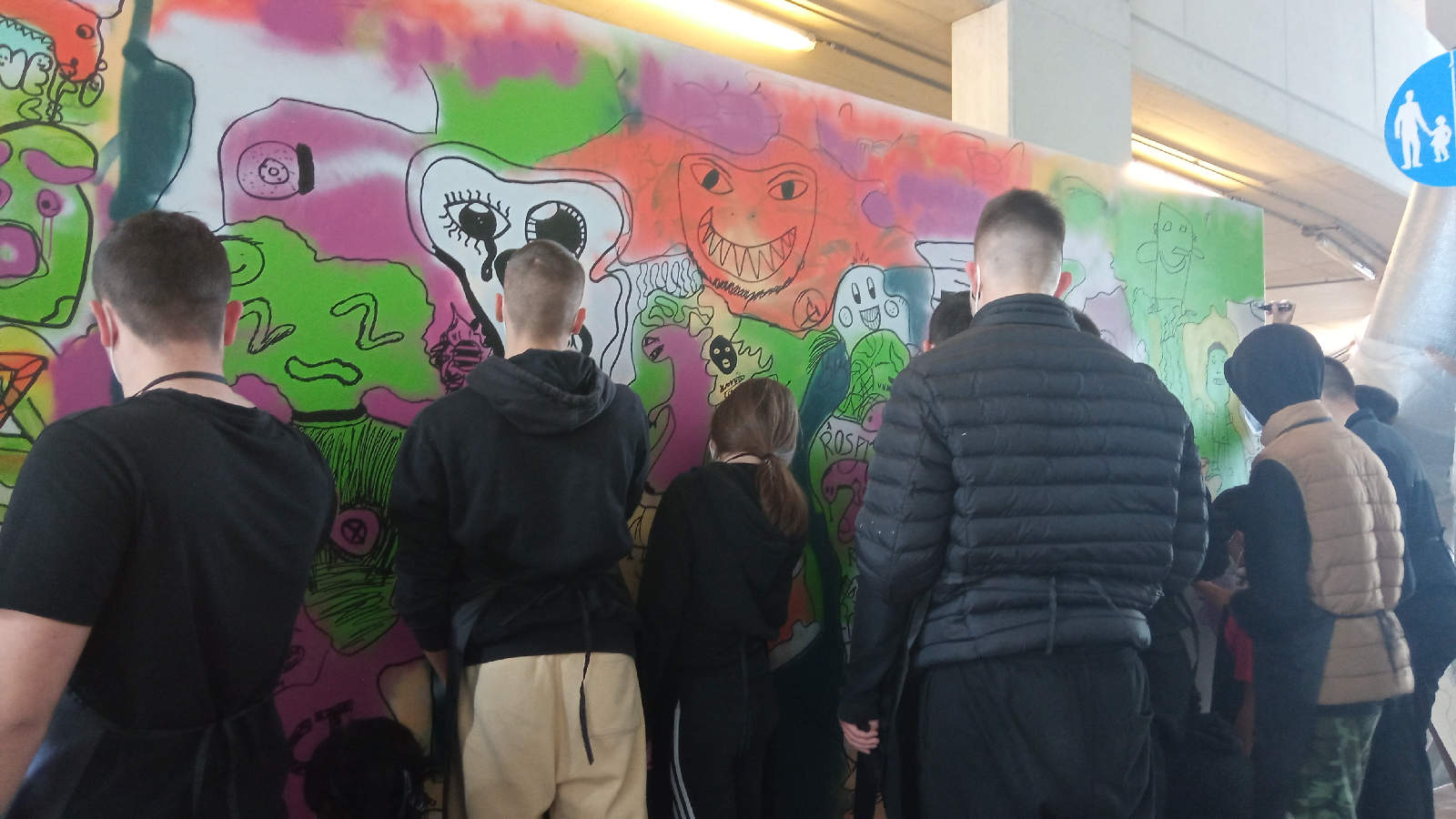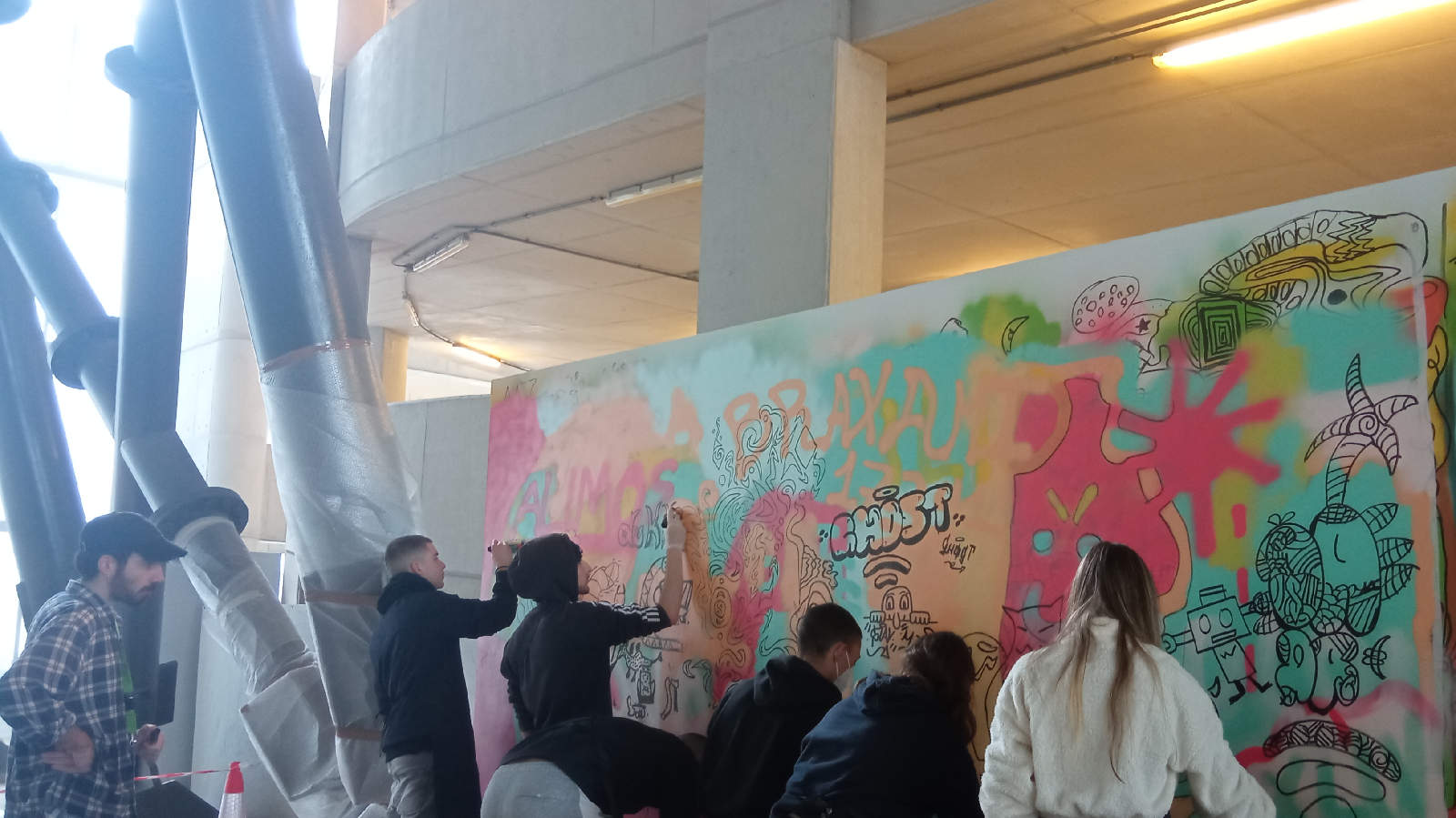 Η κάθε ομάδα είχε την δυνατότητα να εξοικειωθεί με το σπρέι για να καλύψουν τον τοίχο με χρώμα ως μια δημιουργική βάση προκειμένου στην συνέχεια με τον μαρκαδόρο να αποτυπώσουν τα doodles (σχέδια ή characters) που είχαν εξασκηθεί και στο χαρτόνι. Στο τέλος, οι ομάδες ένωσαν τις δυνάμεις τους η μία πάνω στα σχέδια της άλλης, συμπληρώνοντας και κάποιες φορές βελτιώνοντας, και doodlάροντας όλοι μαζί για να βγει ένα ολοκληρωμένο αποτέλεσμα, με την συνεχή καθοδήγηση του Στέφανου και της Αλεξίας που κατεύθυναν τους μαθητές και τις μαθήτριες για το πώς μπορούν να εκφράζονται δημιουργικά μέσα από το grafiiti.