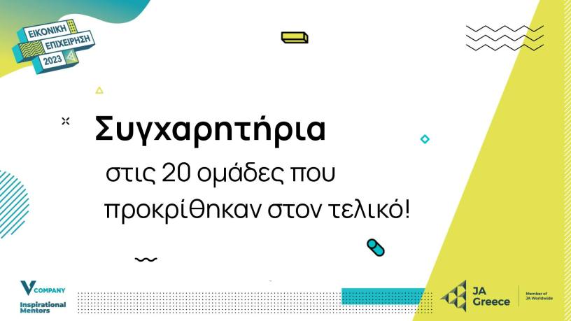 Με μεγάλη μας χαρά ανακοινώνουμε τις 20 ομάδες που προκρίθηκαν στον Πανελλαδικό Τελικό του προγράμματος «Εικονική Επιχείρηση 2023»! Φέτος για πρώτη φορά, λόγω της μεγάλης συμμετοχής, και ειδικότερα από σχολεία και σχολές επαγγελματικής εκπαίδευσης, θα διαγωνιστούν στον Τελικό 10 ομάδες Γενικής Εκπαίδευσης και 10 ομάδες Επαγγελματικής Εκπαίδευσης.