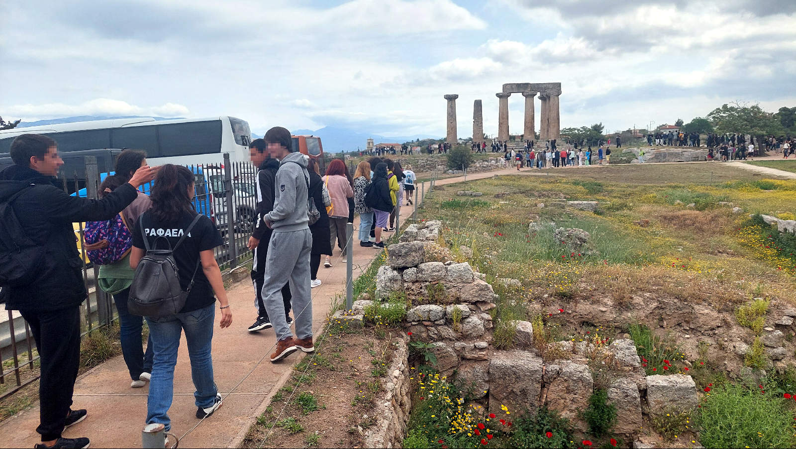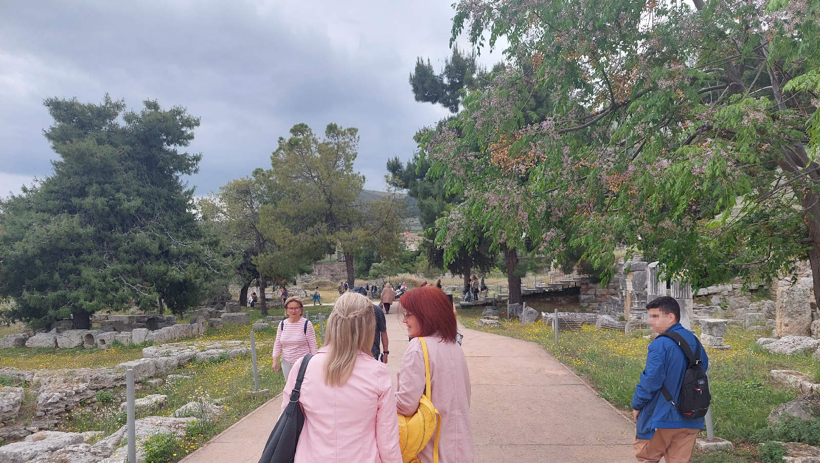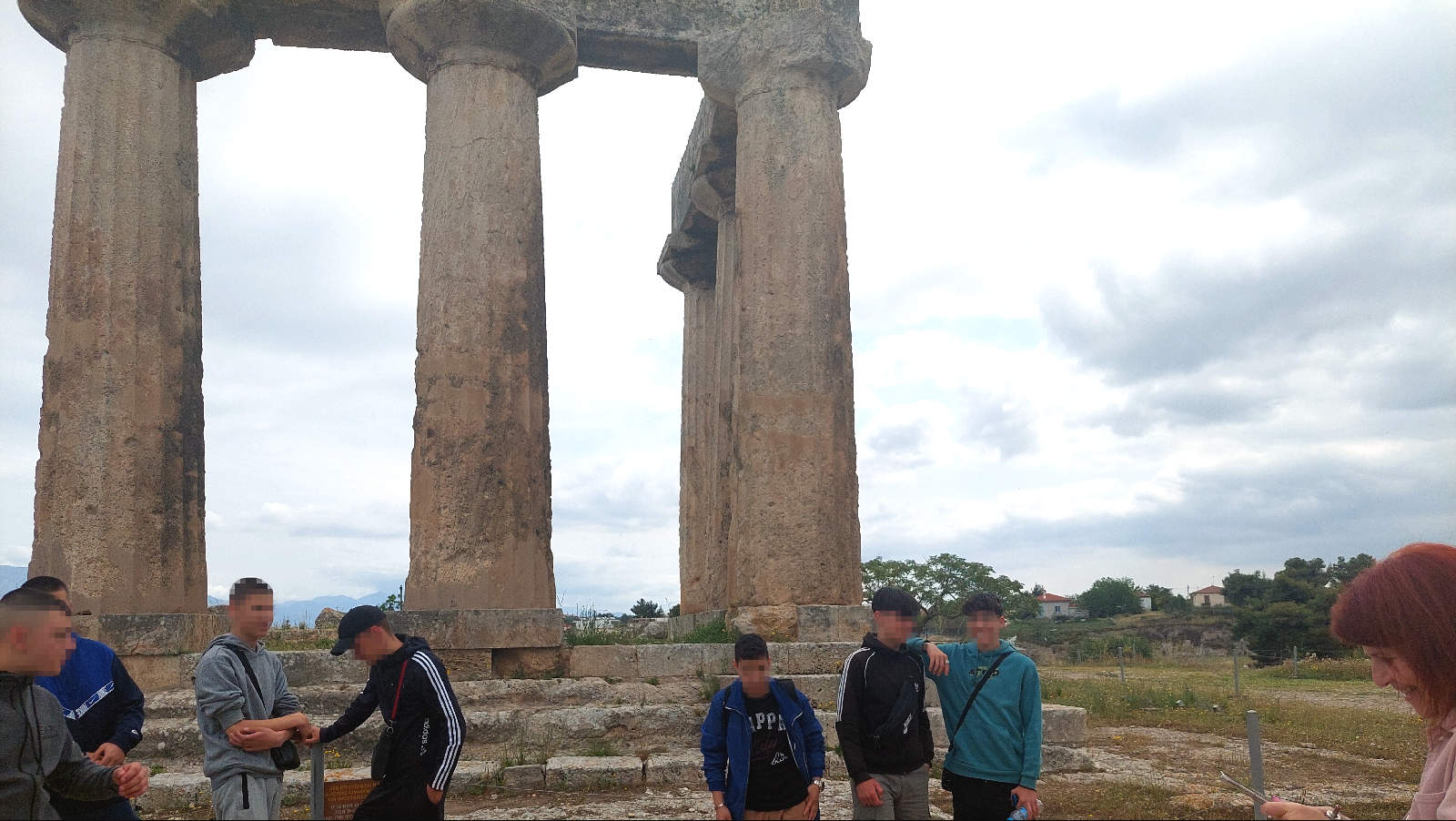 Αρχικά κάναμε μια σύντομη στάση στον Ισθμό της Κορίνθου, όπου οι μαθητές και οι μαθήτριες τράβηξαν αναμνηστικές φωτογραφίες. Η επόμενή μας στάση ήταν στην Αρχαία Κόρινθο, όπου έγινε ξανάγηση.