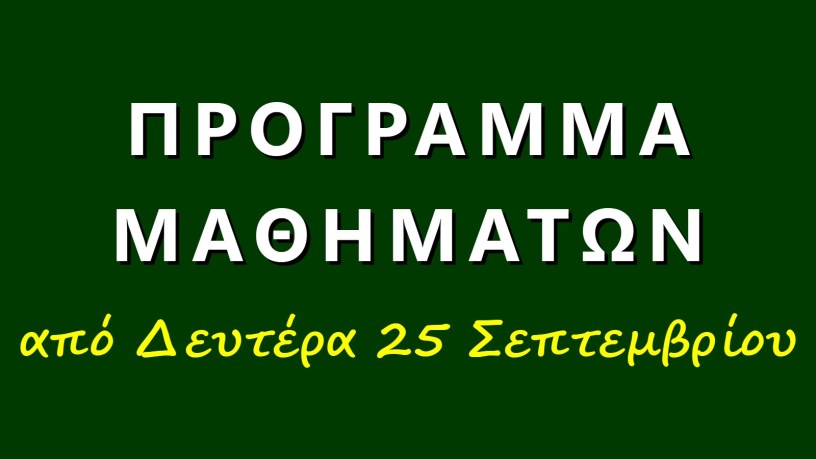 Το πρόγραμμα μαθημάτων που ισχύει από τη Δευτέρα 25 Σεπτεμβρίου 2023 είναι: