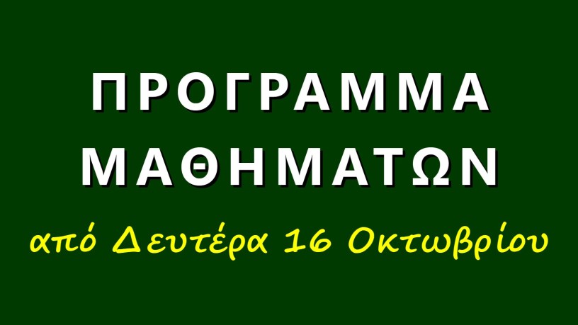 Το πρόγραμμα μαθημάτων που ισχύει από την Δευτέρα 16 Οκτωβρίου 2023 είναι: