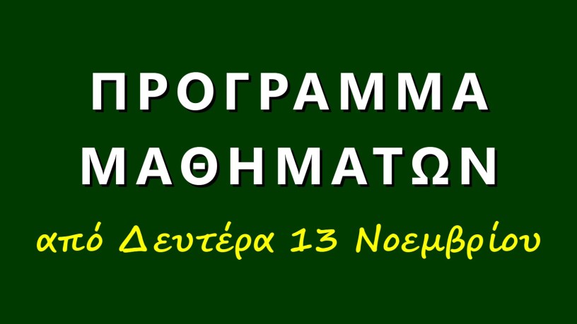 Το πρόγραμμα μαθημάτων που ισχύει από την Δευτέρα 13 Νοεμβρίου 2023 είναι: