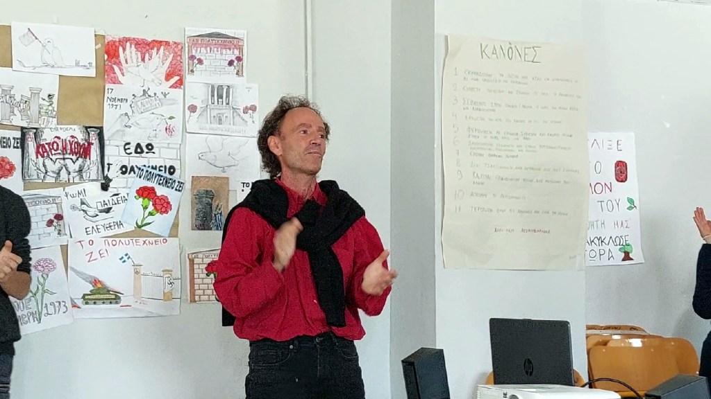 Μέσα σε κλίμα συγκίνησης με την ολοκλήρωση της εκδήλωσης οι μαθητές και οι μαθήτριες παρακινημένοι από όλα αυτά που παρακολούθησαν συμμετείχαν όλοι μαζί τραγουδώντας τα τραγούδια έχοντας έστω και λίγο ζήσει το κλίμα και την ατμόσφαιρα εκείνων των ημερών και που συνετέλεσαν στην απελευθέρωση της χώρας μας από την δικτατορία. Στο τέλος, ο κ. Δημήτρης Φρυδάς υποδιευθυντής του σχολείου μας εξήρε το γεγονός ότι στην εκδήλωση έγινε αναφορά και στις άλλες νεολαιίστικες εξεγέρσεις της εποχής όπως στο αντιπολεμικό κίνημα στις ΗΠΑ, στο Μάη του 1968 στη Γαλλία κ.ά. ενώ αναφέρθηκε εν συντομία στην προσωπική του εμπειρία από τα τότε γεγονότα.