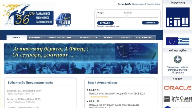 Εναρξη 36ου Πανελλήνιου μαθητικού Διαγωνισμού Πληροφορικής