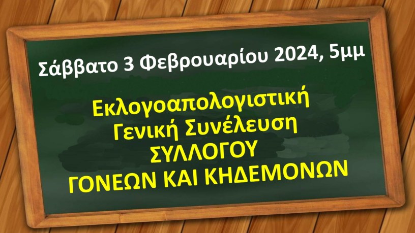 Το ΔΣ του Συλλόγου Γονέων και Κηδεμόνων του 1ου ΕΠΑΛ ΑΛΙΜΟΥ καλεί τους Γονείς και Κηδεμόνες του σχολείου, στην τακτική εκλογοαπολογιστική Γενική Συνέλευση του Συλλόγου η οποία επαναλαμβάνετε το ΣΑΒΒΑΤΟ 3/2/24 και ώρα 5μμ (λόγο μη απαρτίας της ΓΣ που πραγματοποιήθηκε τη ΤΕΤΑΡΤΗ 31/1/24), με τα παρακάτω ίδια θέματα: