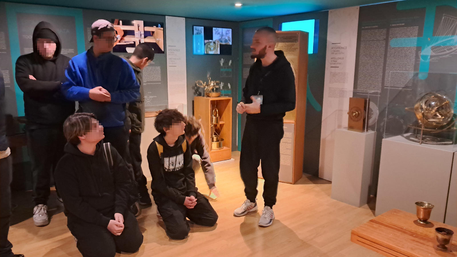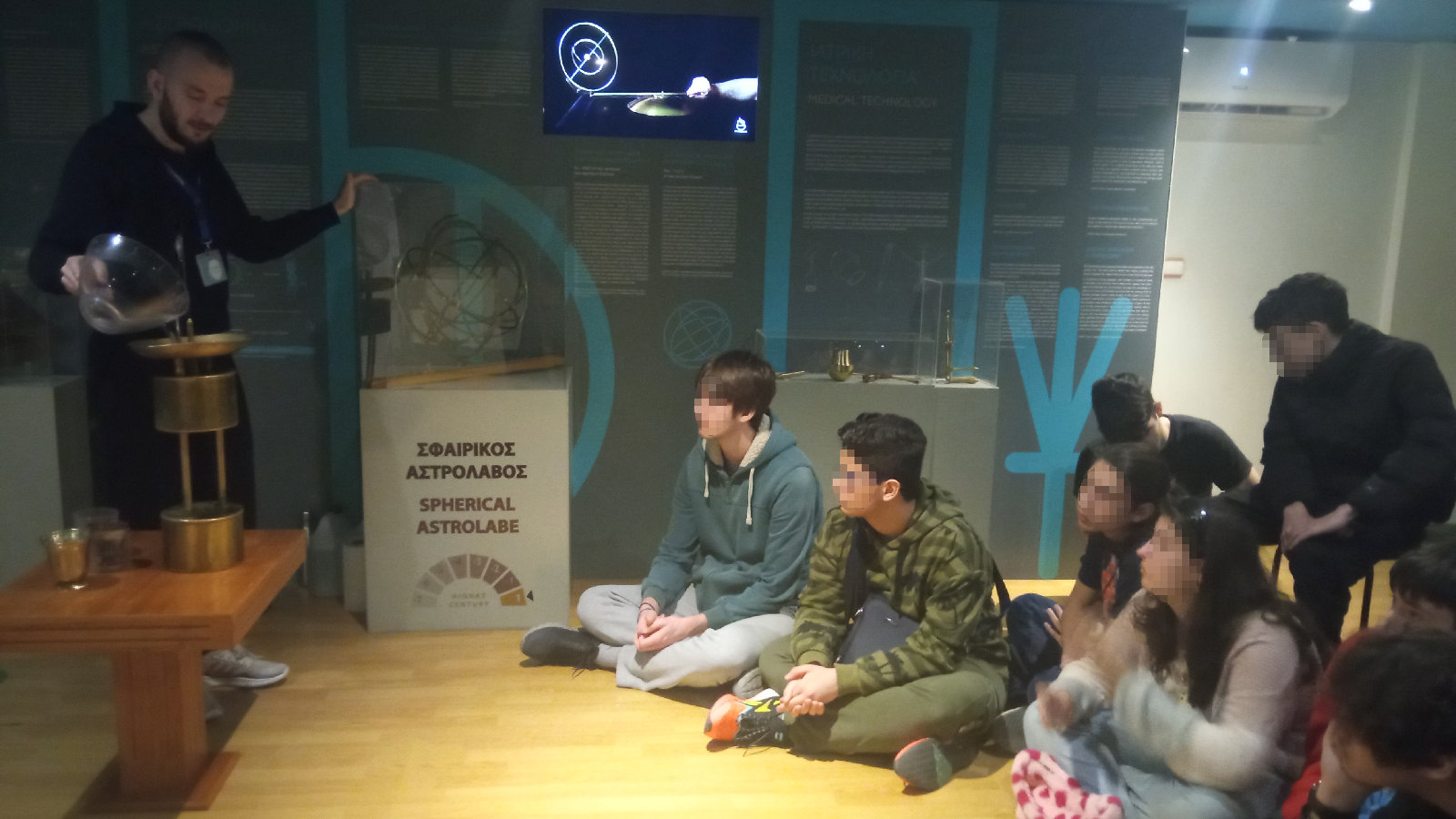 Οι μαθητές και μαθήτριες χωρίστηκαν σε τρεις ομάδες και είχαν την ευκαιρία εκ περιτροπής να ξεναγηθούν στα εκθέματα του Μουσείου, το οποίο φιλοξενεί μια μοναδική συλλογή από αρχαίες εφευρέσεις και μηχανισμούς που χρησιμοποιήθηκαν από τους αρχαίους Έλληνες πριν από αιώνες. Από τα απλούστερα εργαλεία μέχρι τις εκπληκτικές μηχανές του Αρχιμήδη και του Ηρώνα, το μουσείο προσφέρει μια μοναδική ευκαιρία επαφής με τον κόσμο της αρχαίας επιστήμης και τεχνολογίας.