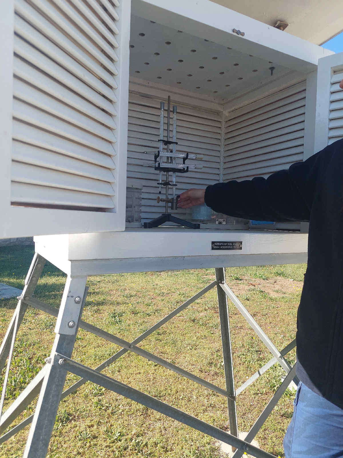 Αρχικά έγινε ξενάγηση στον εξωτερικό χώρο της Υπηρεσίας, όπου υπήρχαν τα ειδικά όργανα μετρήσεων όπως Βαρόμετρο Υδραργυρικό, Βαρόμετρο Μεταλλικό, Αυτογραφικά Όργανα, Ηλεκτρικό Ανεμόμετρο και λοιπά συμβατικά όργανα.