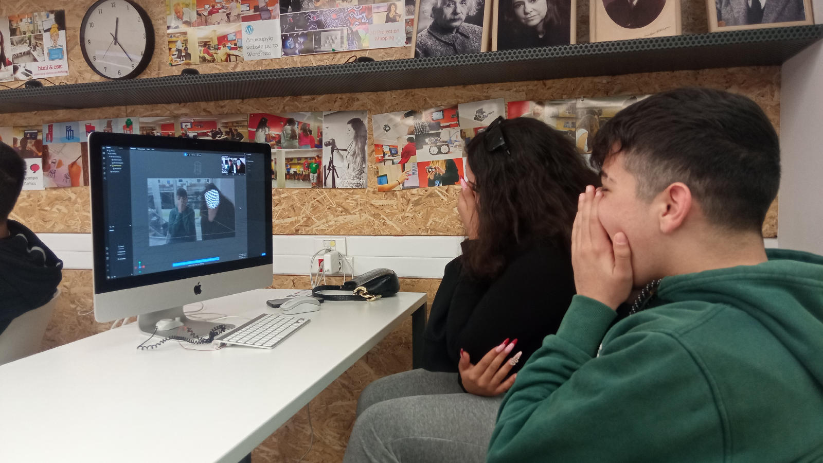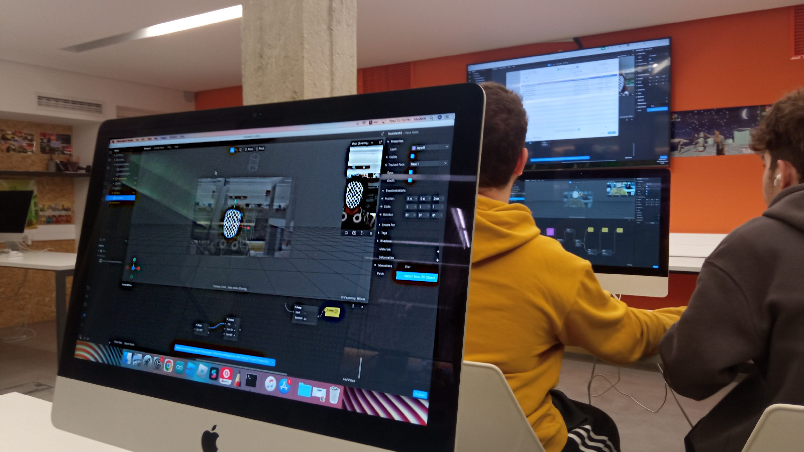 Ένα άλλο συναρπαστικό μέρος του προγράμματος ήταν η ενασχόληση με την επαυξημένη πραγματικότητα (augmented reality). Οι μαθητές χρησιμοποίησαν το λογισμικό Spark AR Studio για να εισάγουν γραφικά και τρισδιάστατα μοντέλα σε ζωντανές σκηνές, δημιουργώντας τα δικά τους φίλτρα επαυξημένης πραγματικότητας. Μέσα από αυτή τη διαδικασία, οι μαθητές εξοικειώθηκαν με την τεχνική της καταγραφής κίνησης και την έννοια της δημιουργίας εφαρμογών επαυξημένης πραγματικότητας.