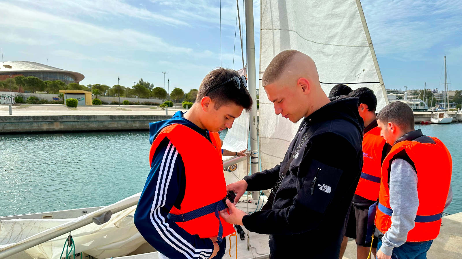 Τέλος η πρακτική εξάσκηση: Η κορυφαία στιγμή της εκδρομής ήταν η πρακτική εξάσκηση. Τα παιδιά επιβιβάστηκαν σε σκάφος τύπου sonar, το οποίο συμμετείχε στους Ολυμπιακούς Αγώνες του Ρίο το 2016. Είδαν το άνοιγμα και μάζεμα των πανιών, τα σχοινιά και τα συστήματα του σκάφους, κατανοήσαν την ισχύ του ανέμου, πως επηρεάζει την ταχύτητα και είδαν από κοντά τον χειρισμό του. Επιπλέον, επισκέφθηκαν το μηχανοκίνητο σωστικό σκάφος και έμαθαν για τον ζωτικό ρόλο του στην ασφάλεια των ιστιοπλοϊκών αγώνων.