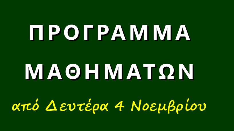 Το πρόγραμμα μαθημάτων που ισχύει από τη Δευτέρα 4 Νοεμβρίου 2024 είναι: