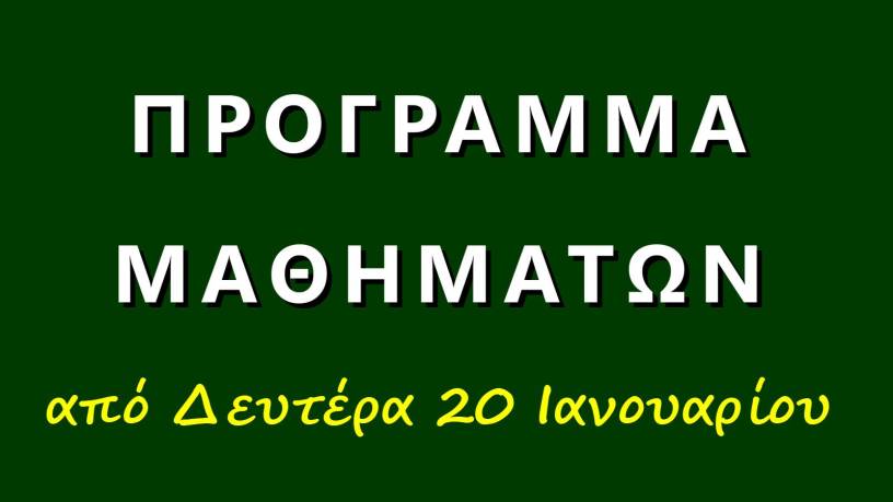 Το πρόγραμμα μαθημάτων που ισχύει από τη Δευτέρα 20 Ιανουαρίου 2025 είναι:
