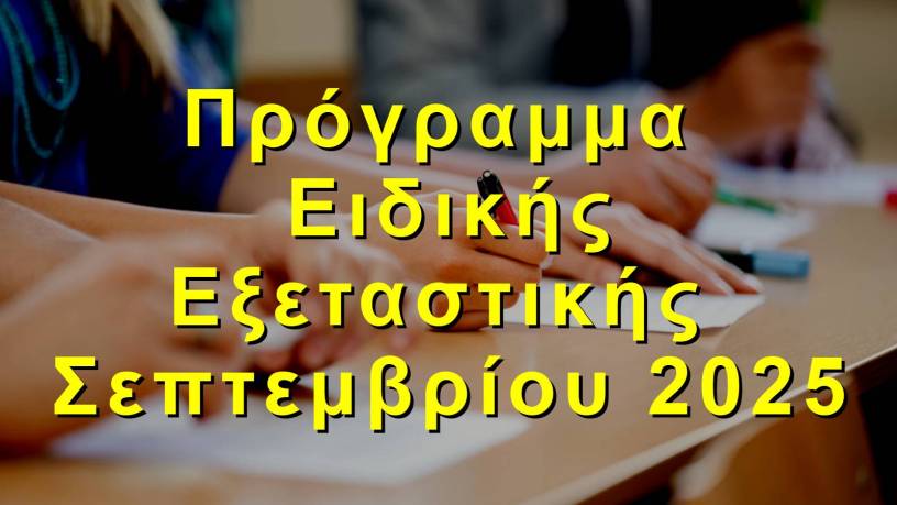 Όλο το Πρόγραμμα της Ειδικής Εξεταστικής Σεπτεμβρίου 2025 ΕΔΩ.