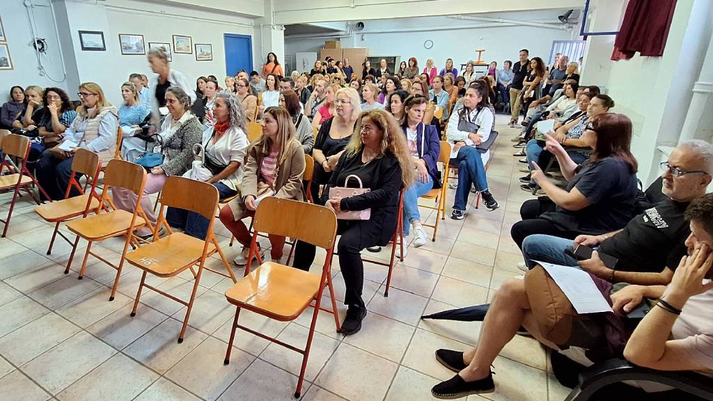Τη Δευτέρα 6 Οκτωβρίου 2025, πραγματοποιήθηκε η πρώτη για το σχολικό έτος 2025-26 συνάντηση των γονέων και κηδεμόνων με τους εκπαιδευτικούς του σχολείου. Ξανασυναντήσαμε παλιούς, αλλά και καλωσορίσαμε νέους φίλους και φίλες, που γέμισαν την αίθουσα πολλαπλών χρήσεων του σχολείου, όπου δέχθηκαν χαιρετισμό και καλωσόρισμα από την Διευθύντρια κ. Θεοδώρα Παπαθανασίου. Το παρόν έδωσαν οι περισσότεροι εκπαιδευτικοί του σχολείου καθώς και η πρόεδρος του Συλλόγου Γονέων και Κηδεμόνων κ. Καλλιόπη Νομικού μαζί με άλλα μέλη του Δ.Σ.