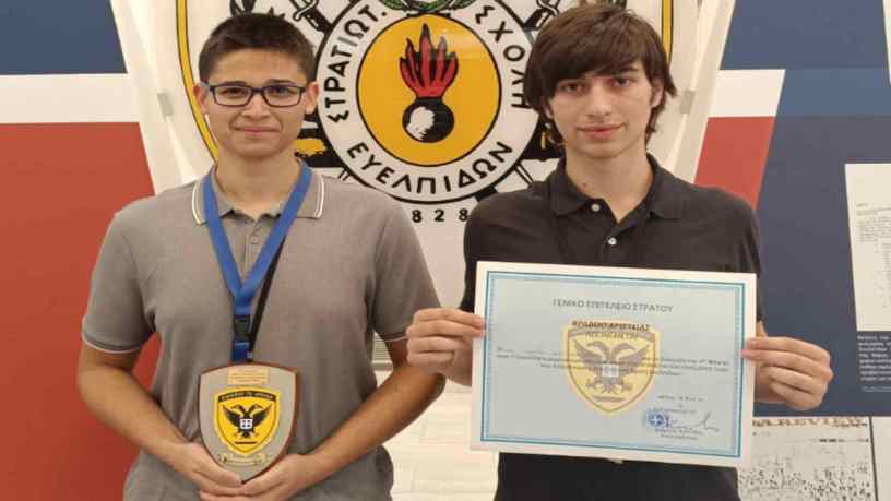 Οι μαθητές μας διακρίθηκαν για την πρωτοτυπία και την ποιότητα της πρότασής τους. Απέσπασαν επάξια την 1η θέση ανάμεσα σε πλήθος συμμετοχών από μαθητές και μαθήτριες όλης της χώρας και βραβεύτηκαν σε εκδήλωση που έλαβε μέρος στην Στρατιωτική Σχολή Ευελπίδων. Τους συγχαίρουμε θερμά για την προσπάθεια, τη συνεργασία και το μεράκι τους, καθώς και για το ήθος και την αφοσίωση που επέδειξαν καθ’ όλη τη διάρκεια της προετοιμασίας τους.