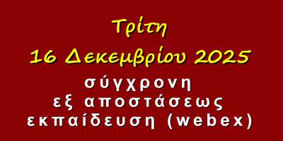 Τρίτη 16/12, τα μαθήματα θα γίνουν με σύγχρονη εξ αποστάσεως εκπαίδευση (webex)