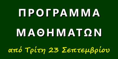 Πρόγραμμα μαθημάτων από Δευτέρα 06/10/2025