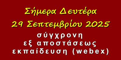 Σήμερα Δευτέρα 29/9, τα μαθήματα θα γίνουν με σύγχρονη εξ αποστάσεως εκπαίδευση (webex)