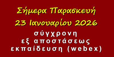 Σήμερα Παρασκευή 23/1, τα μαθήματα θα γίνουν με σύγχρονη εξ αποστάσεως εκπαίδευση (webex)