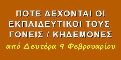 Τετάρτη 11/2: Έλεγχοι Προόδου Α’ Τετραμήνου